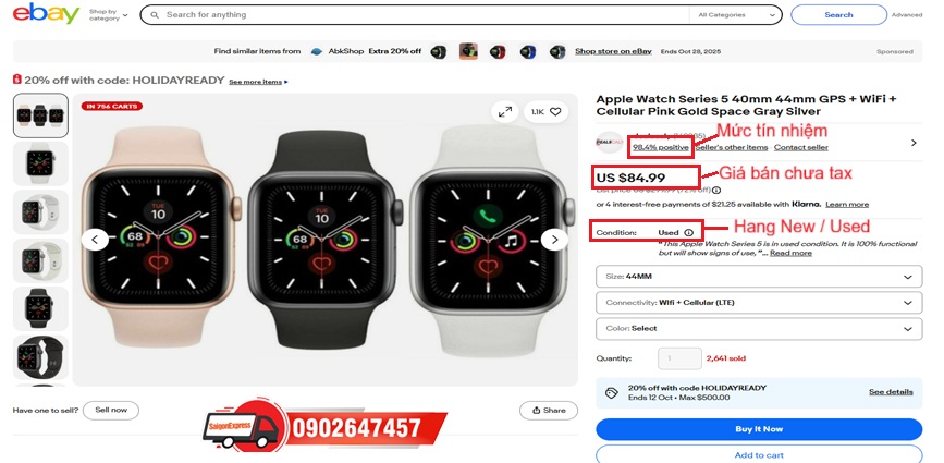 Truy cập vào eBay và chọn sản phẩm bạn muốn mua, sau đó bạn sẽ tìm đơn vị cung cấp dịch vụ chuyên nhận mua hộ thanh toán hộ hàng từ eBay như Sài Gòn Express, Hạnh Phúc Express